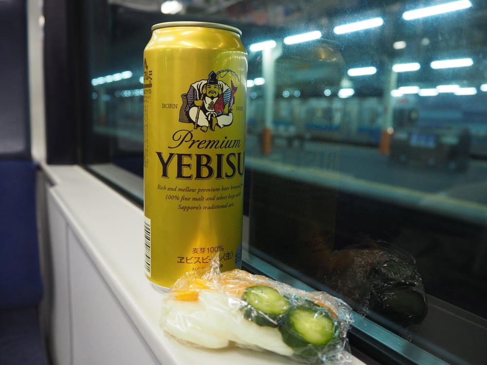 …そんなわけで、帰り際に頂いた缶ビールとお新香で、帰りの電車でチビチビとやらせて頂きました(笑)。乗り換え先の小田急線内では、このスタイル(左上写真参照)は厳しいと思ったので、ボックス席のある東海道本線内限定でのお楽しみ時間でした。このお店は色々な意味でリベンジしたいものですが、その時は演奏の時間を早めに設定致しましょう(笑)。どうぞよろしくお願いします!…お疲れ様でした。