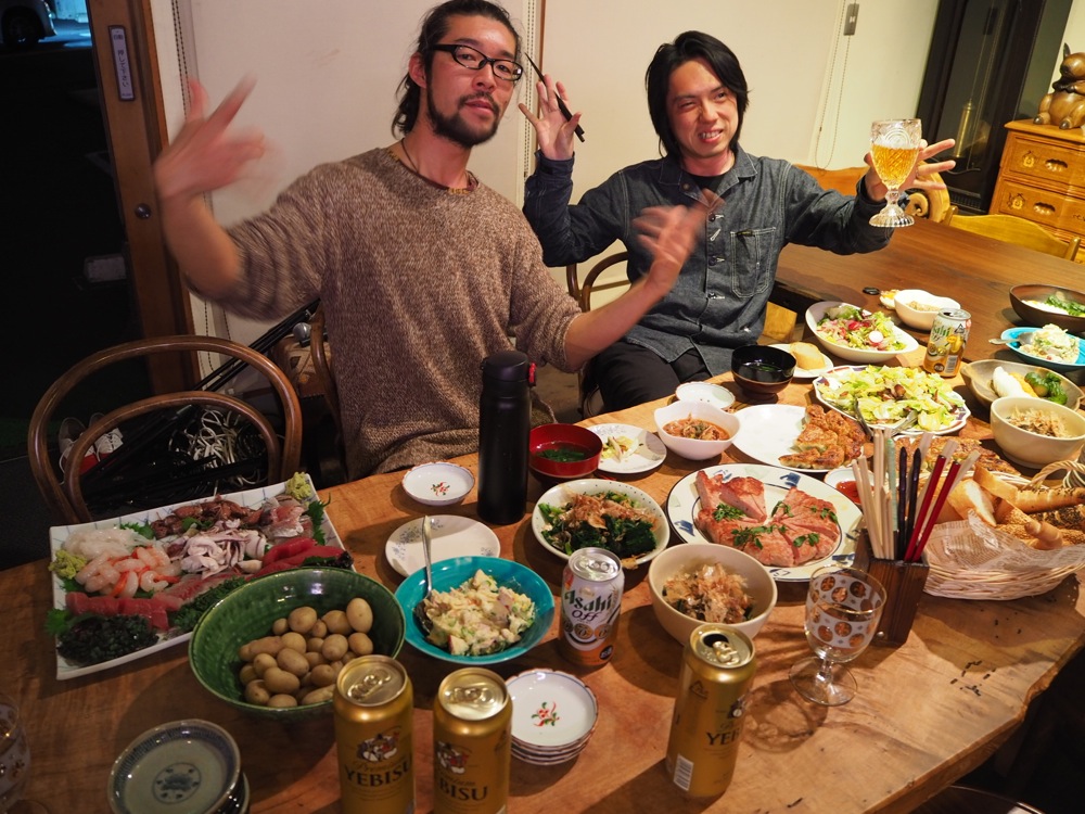 さて、ライブが終了し、そろそろ終電の時刻を気にしようとしていた時に、続々と料理が運ばれてくるではないですか…。それは、大きなテーブルをたちまちの内に一杯にしてしまう程でもありましたが、自分に残された時間が僅かであった事は残念でなりません…。きちんと食べられた時間は15分程だったと思いますが、とにかく腹に収めました。そして、意外な事に、野菜やバゲット、そして海鮮料理まで出して頂いて、そもそも食に自信のある方が集まるお店なのかもしれない…と思ったりもしました。短い時間で料理を堪能して、自分はお店を後にしましたが、この後にはステーキも出されたのだとか…。ああ、残念でなりません…。