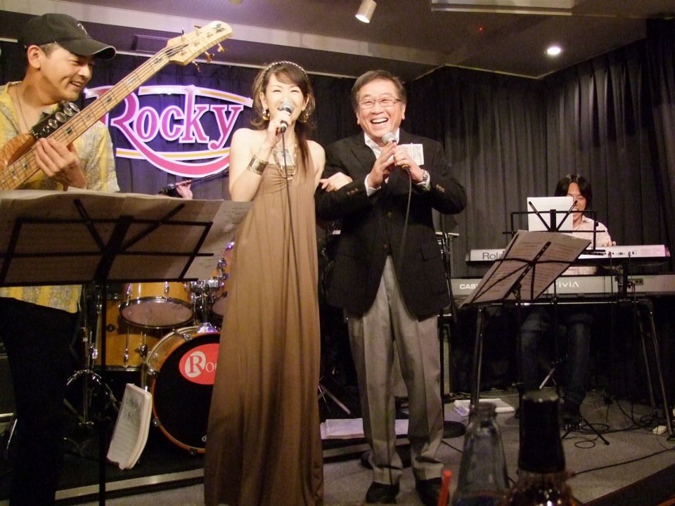 さて、今回の選曲はロス、インディオス&シルヴィアの“別れても好きな人”だったのですが、これは男性、女性のデュエットで歌う曲です。…まさか…そう、そのまさかなのですが、今回はマスターからの熱い要望?で、ボーカルの恭子さんとのデュエットが実現してしまったわけです(故に、いつものギターは弾きません…)。そして、今回で歌は引退…とも仰っていましたが、一体どういう意味なのでしょうか(笑)。