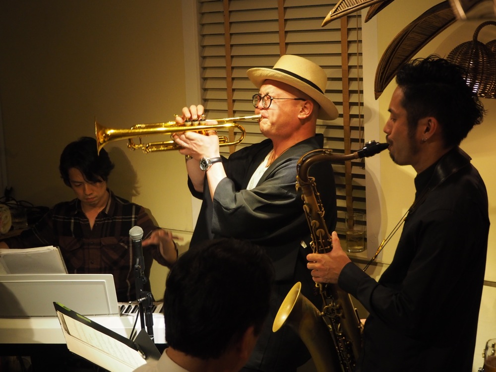 選曲も幅広く、TRI4TH のレパートリーを交えながら、ジャズ・スタンダードも入れていったという感じでしょうか。TRI4TH のフル編成から見ると、ベースとドラムがいない状況であるので演奏可能な曲は限られましたが、それでも色々な曲に挑戦出来たと思います。また、常に3人での演奏ではなく、織田君とデュオ、藤田君とのデュオ…というスタイルでもそれぞれお送りしていきました。