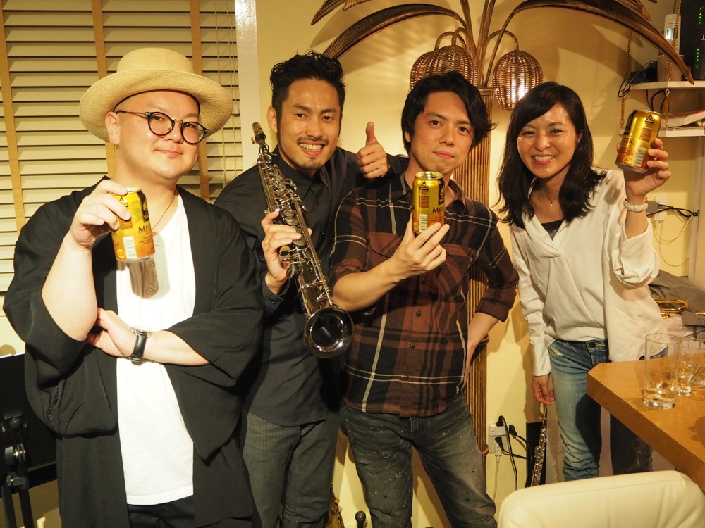 アンコールでは、TRI4TH の曲としてお馴染みの“Dance 'em All”に3人で挑戦しました。ここではせっかくなのでお客さんにも立って頂いて、さながらいつもの TRI4TH のような状態で演奏していきました。自分も何年も Kuro に出演していますが、お店でお客さん総立ちという状況は初めて目にしたような気がします(笑)。人数が少ないと言えども、自分達のスタイルを貫けたステージが出来た事に感謝の時間でした。そして、多くの方に喜んで頂けたのが何よりの時間でした。お陰で、自分達のお酒も進みました…(笑)。どうもありがとうございました!