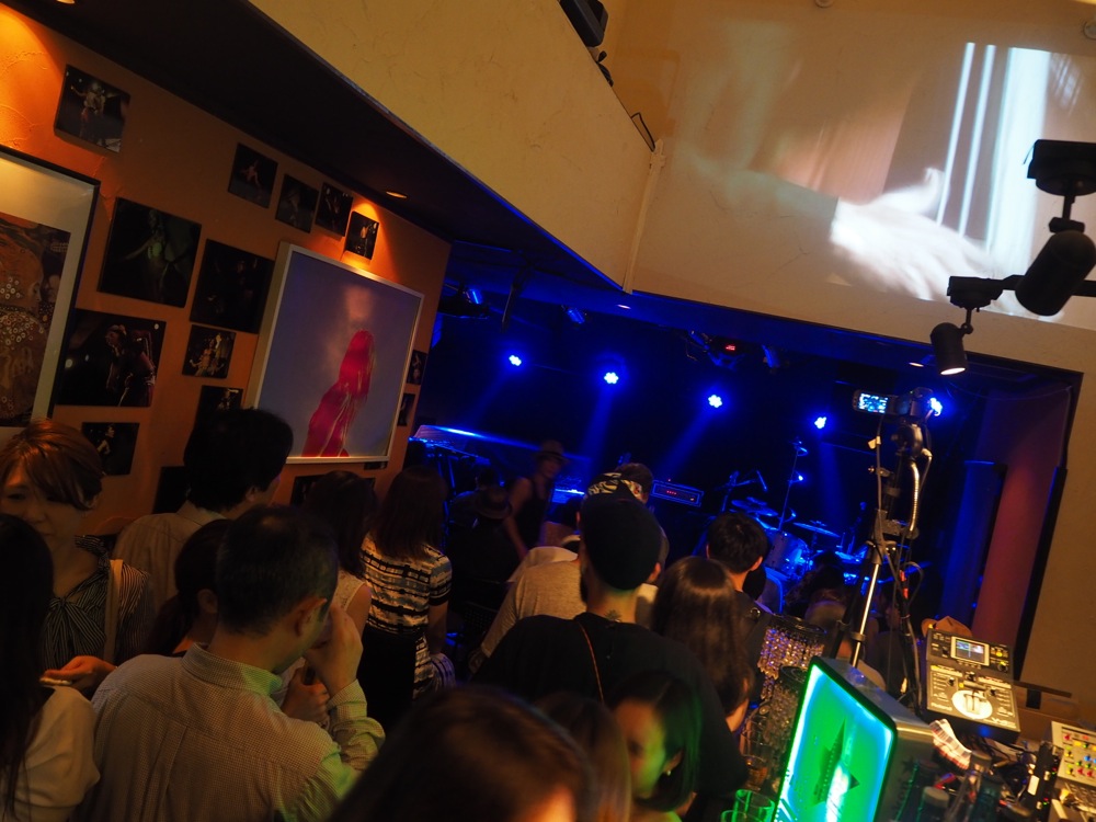 ライブの前に、まずは Makoto さんの DJ からスタートしましたが、この時点でお客さんの入り状況は物凄く、お店の入口まで立ち見状態となっていました。この時点で会場の熱気は既に上がっており、ライブへの期待という空気感も強く感じたものでした。