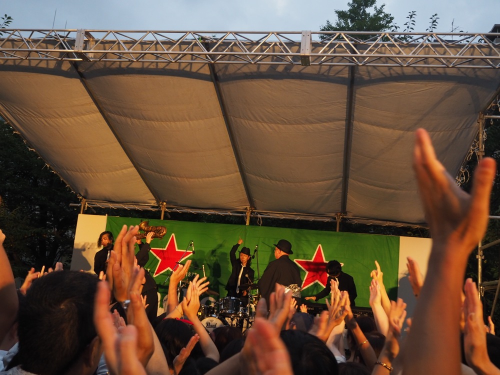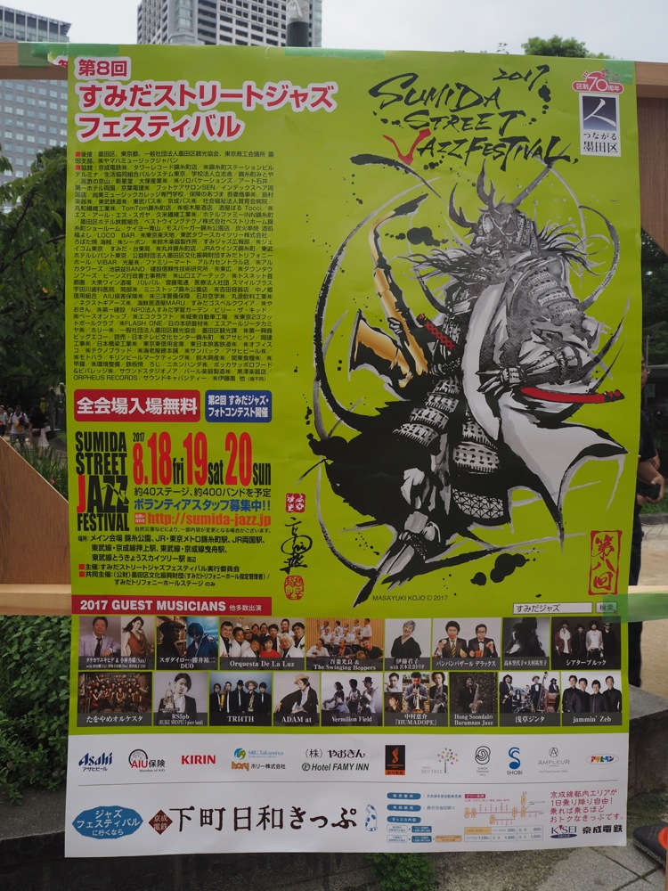 本当に楽しい時間でした。何度も言いますが、すみだジャズはお馴染み過ぎて、このイベントが終わらないと夏を越せないという感覚さえあります(笑)。写真を見ても分かる通り、今年も無事に夏を越せそうな感じがありましたね。今まで見た中でも明らかに、一番沢山のお客さんがステージから見えた、今回のすみだジャズ。また来年もこの景色が見えたら…と思います。多くの方の協力があってこの日がありました。またどうぞよろしくお願いします!