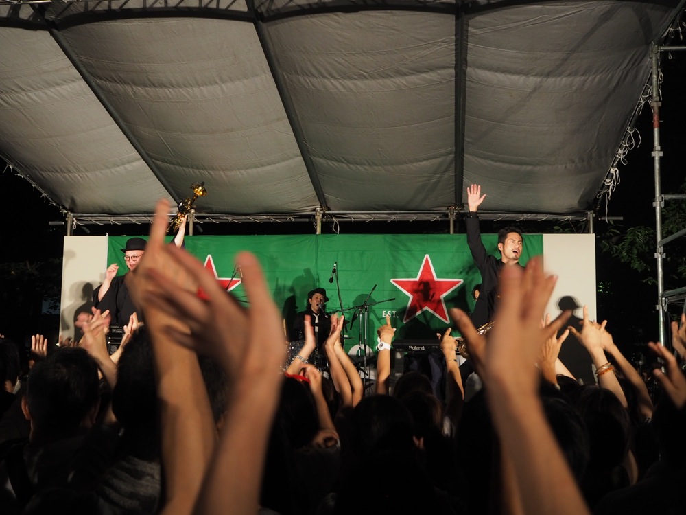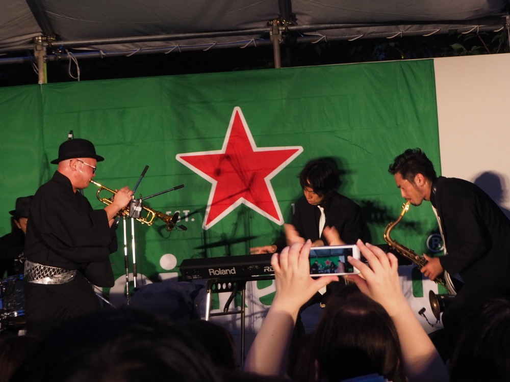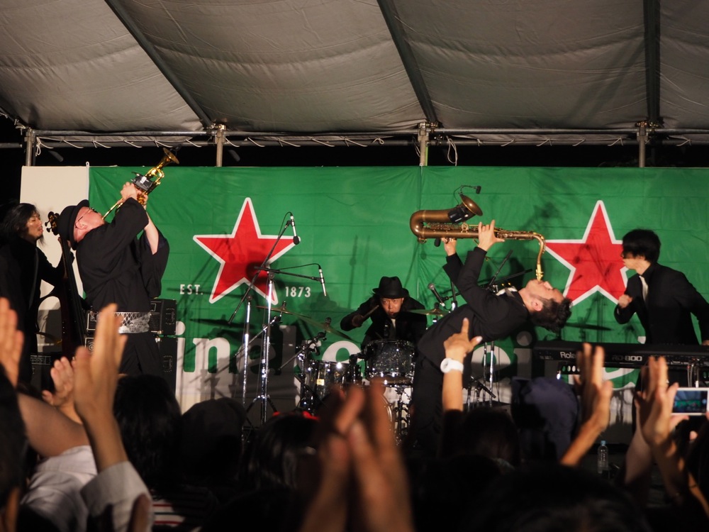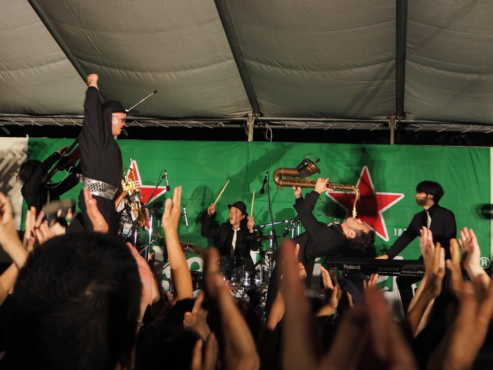 色々な想いが入り交じりながらのステージでしたが、あっという間に楽しい時間は経ってしまうのか、いつの間にか最後の曲まで駆け抜けていってしまいました。ひとまずステージから降りるも、それでもまだ客席は踊り足りないオーラがバシバシと(笑)きていました。ここで1曲だけアンコールへ。一番踊れる曲であり、恐らくすみだジャズに一番最初に出させて貰った時からやっている曲“Dance 'em All”を演奏し、今回の締め括りとさせて頂きました。ここでの盛り上がりも凄かったです。自分達のステージを最後まで見て頂き、そして最後までガンガンに踊って頂き、どうもありがとうございました!…ステージ上から見えた「すみだ」の景色、絶対に忘れる事は無いと思います!
