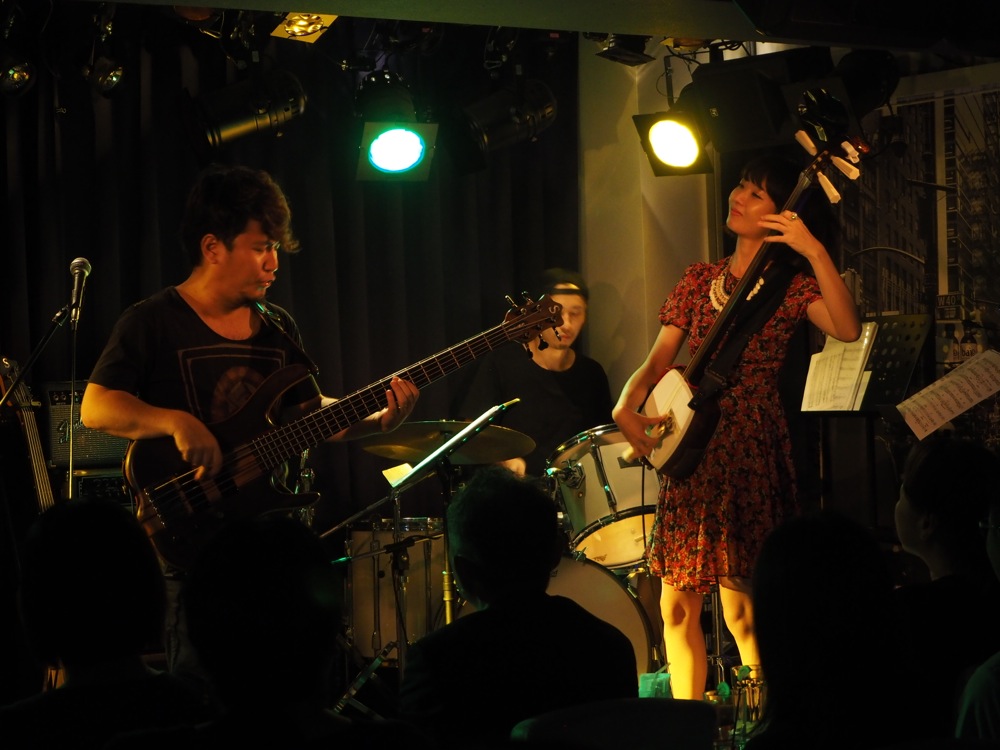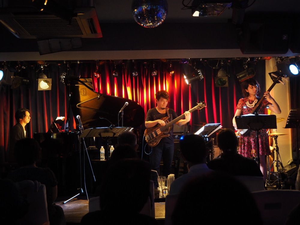 …いざステージに出て音を出してみると、皆、いつもより攻めの姿勢がありました。ここのお店の音の印象にも繋がるのでしょうが、ハッキリと自分で演奏したい事をやっていくと言いますか、出た音に合わせて皆で寄せていって、バンド5人で音を作っていく流れが明確に出ていたのです。誰かが音で攻めてくると、直ぐさま他の誰かが合わせていく…。そして更に誰かが重ねていく…という感じです。ここで生まれた音はパワフルで、どこかロックスプリットを感じさせるような、そんな雰囲気がありました。これもまた黒船サウンドの1つの側面と言えるのかもしれません。