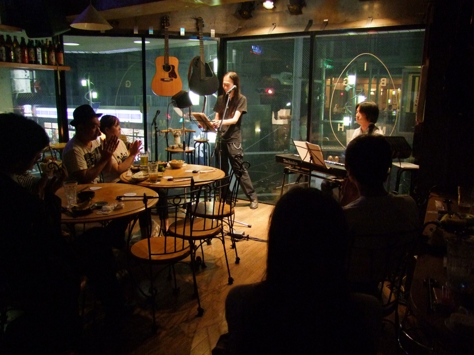 さて、今回は何となくですが、ジャズ・スタンダードの曲が多い選曲になったのでしょうか。意外にも、前回のライブが初披露だったという“Over The Rainbow”や、かなり即興感を前面に出した“Besame Mucho”(構成以外取り決め無し!)、そして、どちらかと言うとミュージカル曲なのかもしれませんが、“People”等です。もちろん、鹿嶋さんオリジナルの解釈が随所に散りばめられており、いわゆる普通のジャズ・スタンダードをやっているライブとは、別物の雰囲気が感じられましたね。ちなみに、自分達のやるライブではよく取り上げる“ヨイトマケの唄”も、もう個人的には随分とスタンダード化している…と思っているのですが…(笑)。