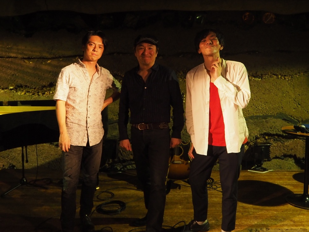 そしてもう1曲はオリジナルの新曲ですが、今回は自分が曲のコード進行を作って、丸本さんと又吉君がメロディと歌詞をのせるという、共同作というプロジェクトでやらせて頂きました。これが色々と難航し、結局は曲が完成したのは当日の朝という感じだったのですが、本番直線のリハーサルで更にアイデアを絞り出し、ようやく本番で演奏する事によって、本当の完成が構築出来たと言っても良かったかもしれません。難産でしたが、ここから演奏を繰り返す事によって熟してくる曲だと思います。今後が楽しみです。