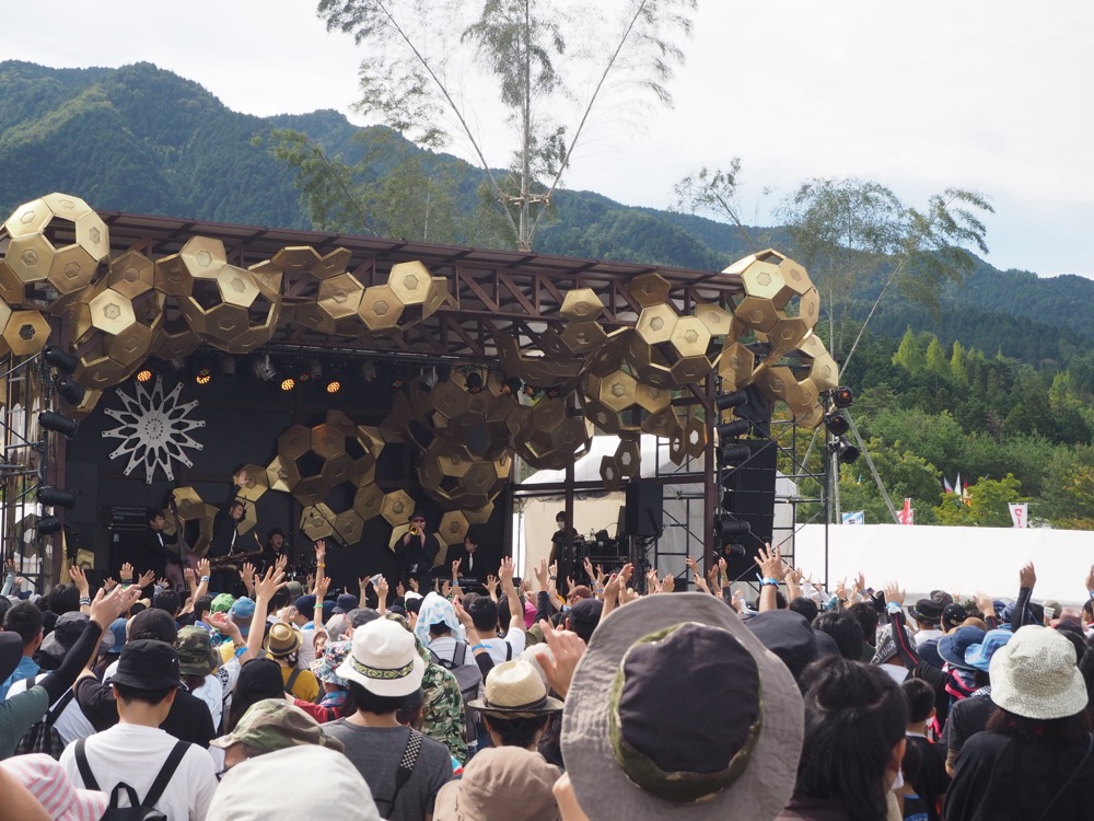 次の日、TRI4TH 一行は朝6:00にホテルを出発し、一路中津川へと向かいました。前述したように、この日はロックより激しいジャズバンドを公言する TRI4TH にとって念願の、初の本格的ロックフェスへの出演、『中津川 THE SOLAR BUDOKAN』に向かう為でした。岐阜県の中津川公園が会場となるこのフェスは、シアターブルックの佐藤タイジさんが主催となっていて今年で6年目を迎えるもので、運営に関わる全ての電力を太陽光でまかなうというのが大きな輪特徴となっています。環境に優しく、そしてファミリー層にも楽しんで貰えるような会場運営にもさせていて、とても楽しみにしていた1日でした。