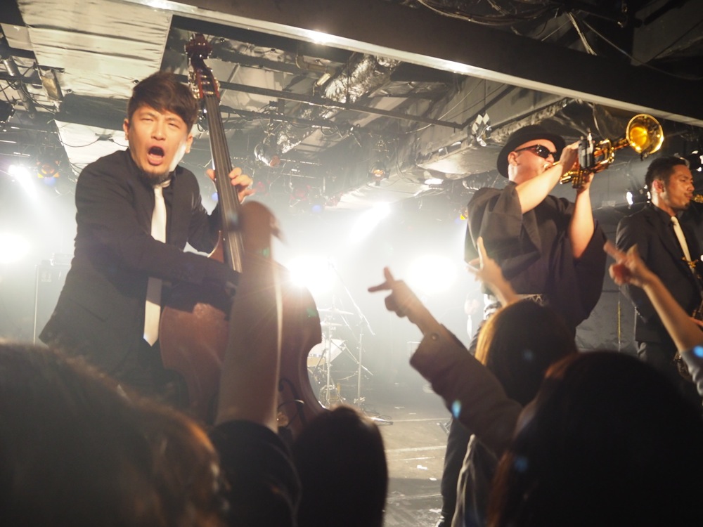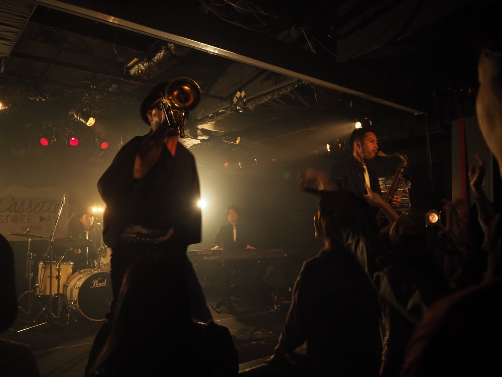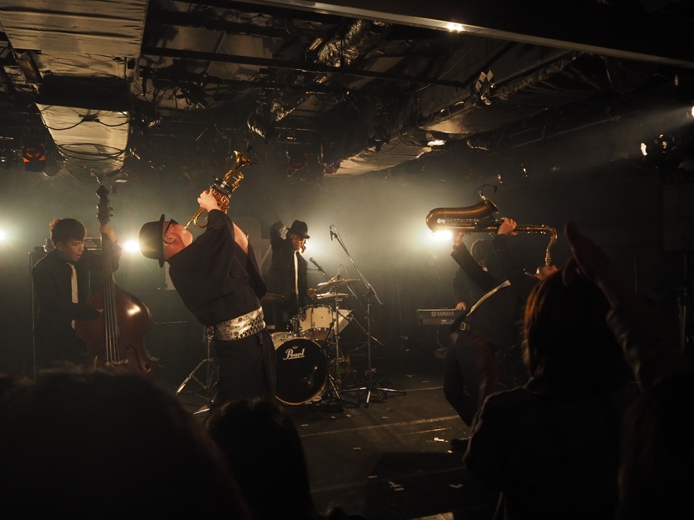 渋谷 Milkyway のステージは、横というより縦に距離のあるステージで、これをどう使うかが今回のポイントとなっていました。フロントの TRI4TH Horns は楽器を吹く時に、どのように前に出ていくのか、そしてドラム寄りに戻ったりするのか、ソロの時は…等々、事前に決めておくべき事もありつつ、ライブならではの空気感をその場で判断しての動きも加味して、この日ならではのパフォーマンスを続けていったのでした。