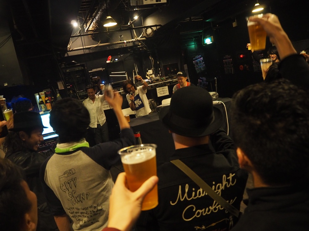 終演後には皆で乾杯をしました。この日1日を通して、カセットというものがどれだけ皆から愛され、音楽自体の魅力と、切っても切り離されないものである事が分かりました。そして何よりも、カセットテープがグッと身近に感じられた事が嬉しかったです。せっかく、カセットによる“4th Rebellion”も頂いた事ですし、カセットデッキでも探しに行こうかと思ってしまった次第でした。良い1日でした。どうもありがとうございました!