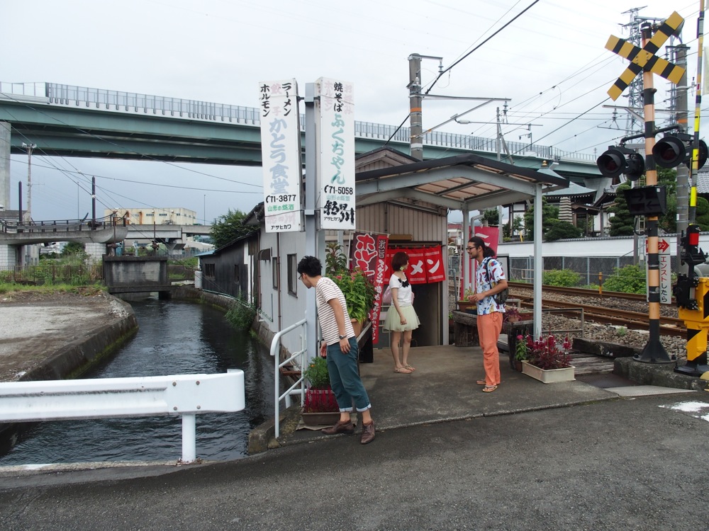 2日目は沼津市内にあるお店でライブの予定でしたが、前日、自分達は富士市内に宿泊していたので、地元の中司さんお勧めの昼ご飯処、そしてカフェ等に立ち寄りつつ、その後、のんびりと沼津に向かっていった感じでした。まずはお昼ご飯に訪れたのが、ホルモン焼きのお店、かとう食堂。随分と狭いお店でしたが(笑)、味は抜群。JR身延線の線路脇という環境もなかなか楽しいですが(笑)、この踏切を渡ったところにあるお好み焼きさんは、ここの大将の奥さんがやっているそうで、こちらは夕方からの開業。その代わり、かとう食堂は夕方までの営業にしているのだとか…。そんな情報まで教えてくれて楽しかったです。
