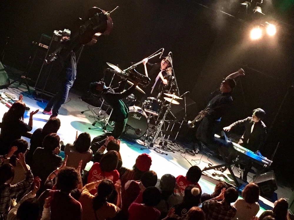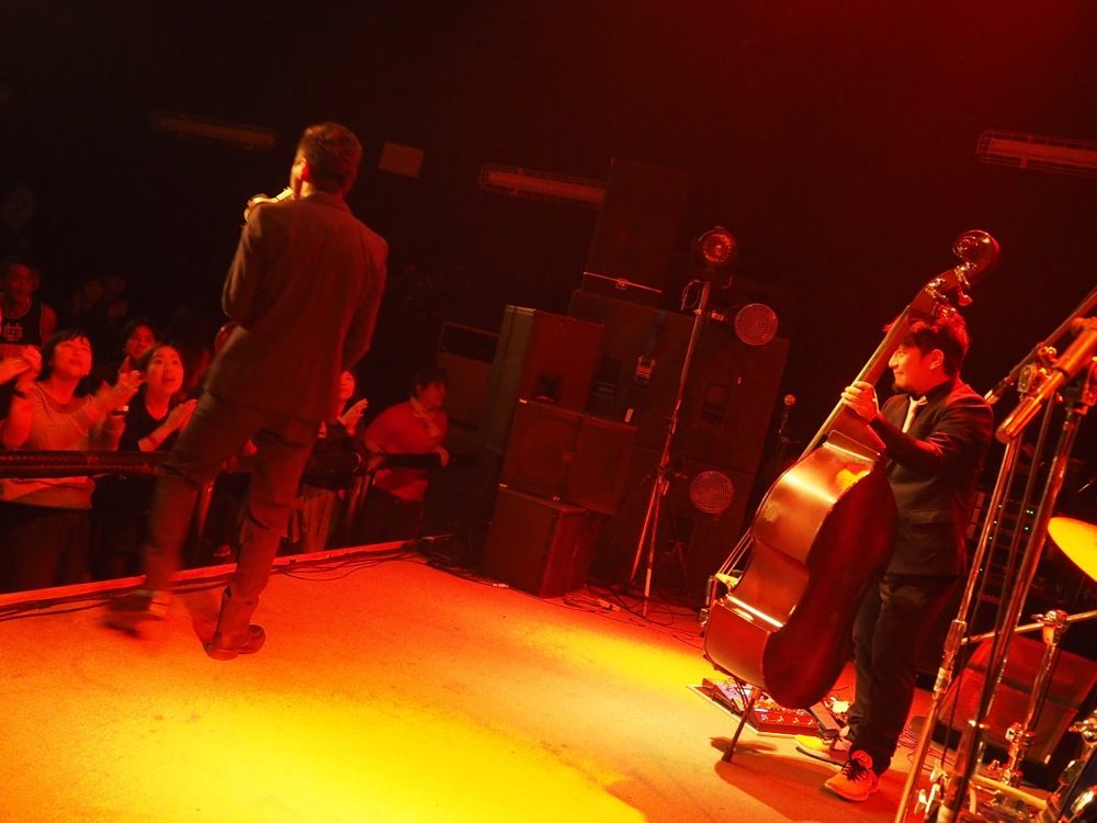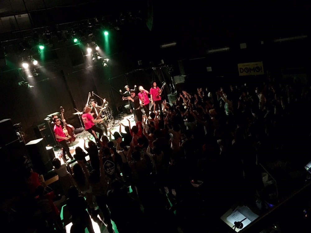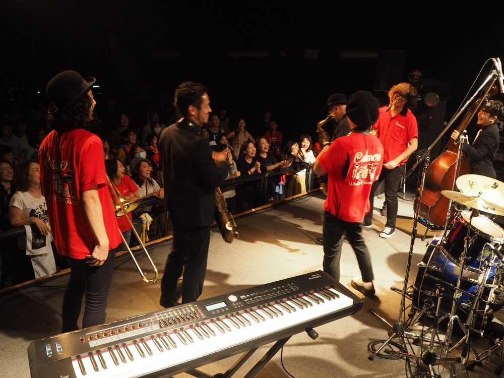 変化があったのは後半戦。前述のように、今回はカルメラも出演していたのですが、せっかくいるなら…という事で、コラボステージをお届けしようではありませんか。ホーンズのメンバーだけステージに上がって貰って、共に“HORNS RIOT”を演奏させて頂いたのでした。この登場には驚いた人達も多く、良いサプライズになったのではないでしょうか。分厚いホーンサウンドを大いに響かせていきました。