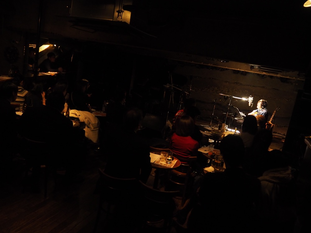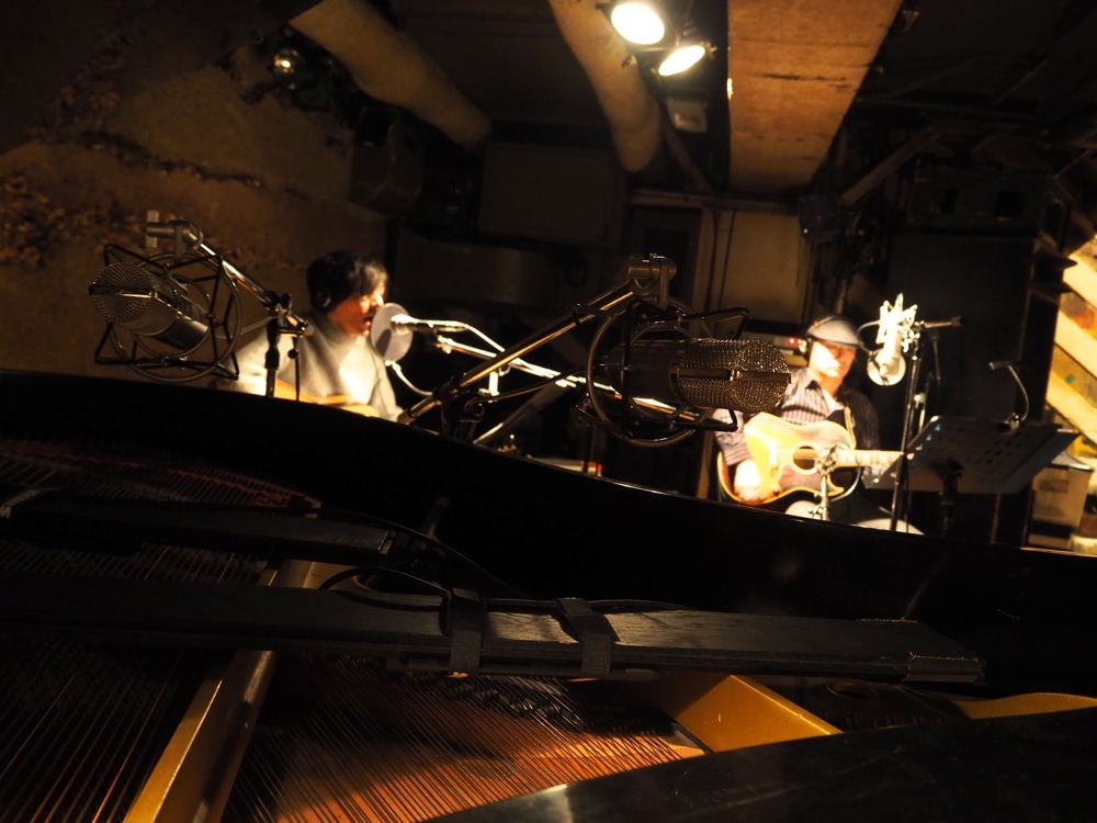 そしてタイトルにあるように、今回は『レコーディング・ライブ』と銘打ってやらせて頂きました。お店の機材だけではなく、ちゃんとレコーディング用に本格的な機材を持ち込み、そしてエンジニア付きでレコーディングをしながらライブを進めていくというものです。だいぶ豪華ですが、実は以前にもこうした形態でライブをやらせて頂いた事がありました〔丸本達也、1年振り、2度目のワンマンライブ参照〕。ただ、今回はそれとは少し趣向が異なっていて、最初から「レコーディング・ライブをやる!」とフライヤーにも告知して行いました。そして、スタジオでレコーディングをしているような雰囲気を、分かりやすくお客さんにも伝える…という状況も加味しながらのステージングにして、お客さんにもレコーディングに参加して頂いているような、そんなライブを目指していったのでした。