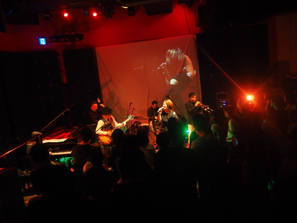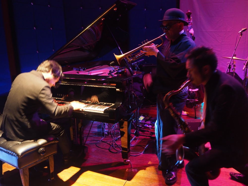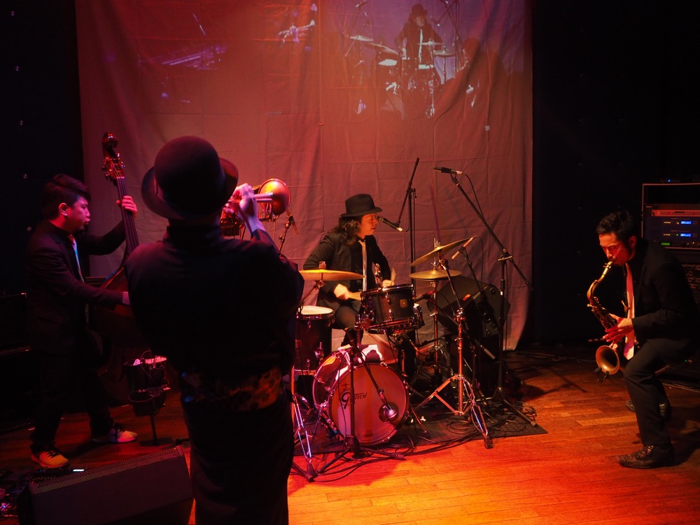 時刻は前日12月31日の、22:00を少し回った頃…。ドラムのタカオさんがサポートを務める ADAM at がステージを展開させていました。舞台となる渋谷 JZ Brat は、ジャズクラブという印象のお店ですが、この時は正にスタンディングのクラブを想像させるような熱気と音の渦が溢れていました。フロアの最前ではお客さんが沢山踊っていて、かなりの盛り上がりを見せているという流石の状況でした。