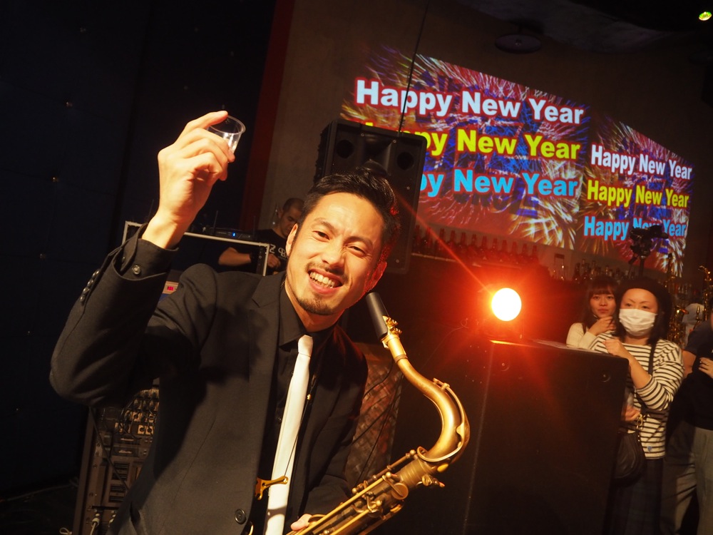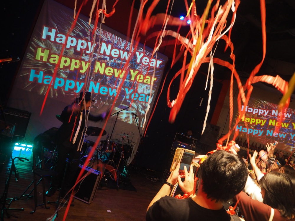 出演者やお客さんも交えてクラッカーを勢いよく打ち鳴らし、振る舞い酒も配られ、今年も華やかな幕開けとなりました。そして年越しから30分後の24:30、自分達のステージへと繋がっていったのでした。