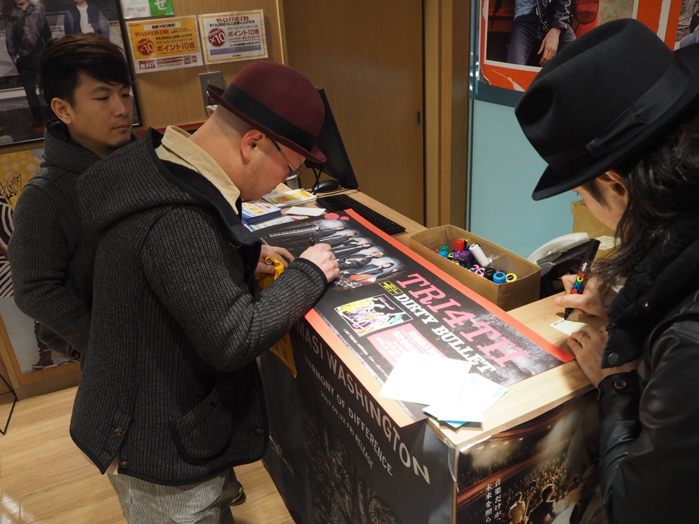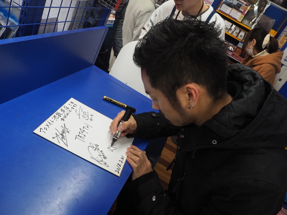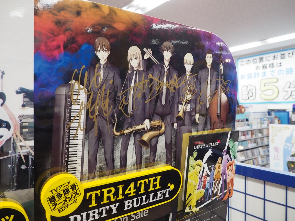 今回、店舗特典として、〔TRI4TH、CD『DURTY BULLET』店舗特典画像解禁!参照〕でも紹介した B2 告知ポスターがあるのですが、その他にアニメイトのみの特典として、店舗特典の画像が描かれているブロマイドが存在します。それだけこのCDに力を入れているという表れなのかもしれません。本当に有り難かったです。ディスプレイと色紙に、自分と藤田君のサインも書き加え、無事コンプリート達成出来ました!