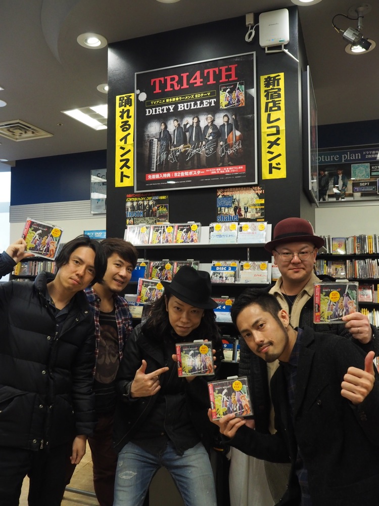今回、TRI4TH としては初めてのアニメ・エンディングテーマという事で、CDショップ挨拶回りにしても新鮮な雰囲気があり、まだまだ新しい経験をさせて貰っていると感じます。これは聴いて頂いている方も同じような心境かもしれませんね。アニメとジャズをコラボさせる事で、より音楽の世界が広がっていければなと思います。引き続き、どうぞよろしくお願いします!