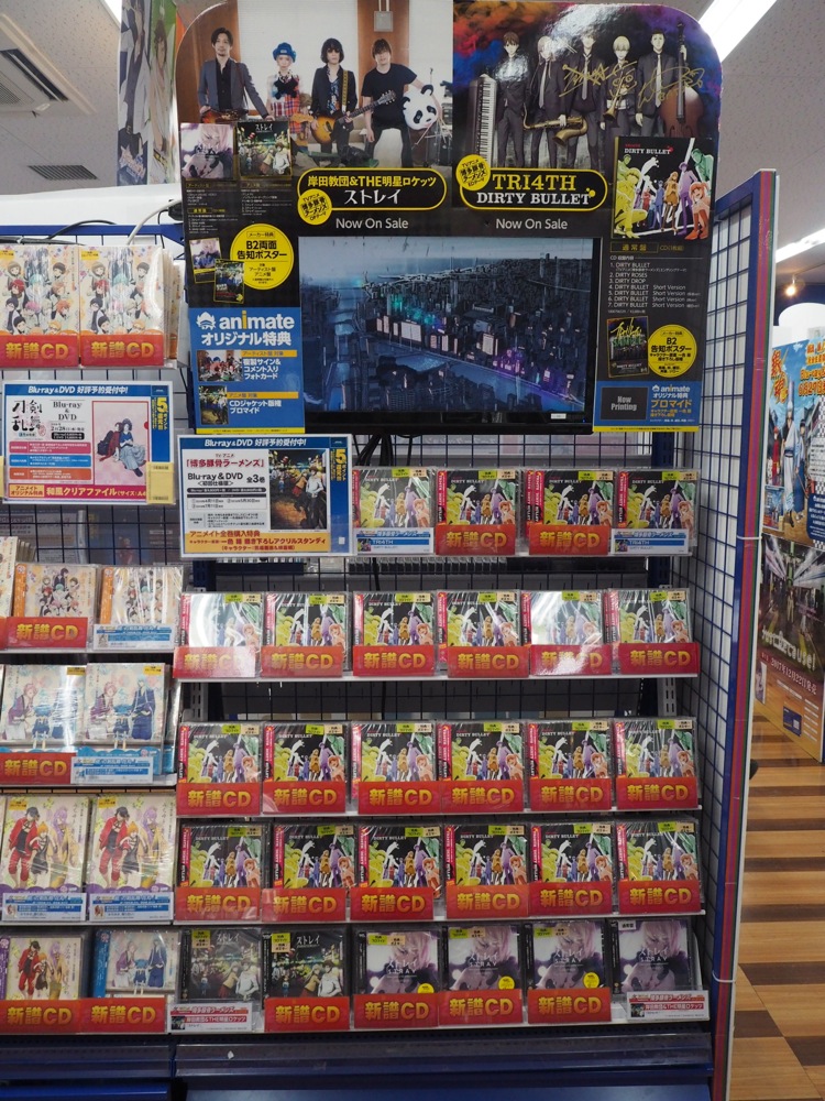 さて、藤田君と自分は別件のリハーサルの為にここで離脱したのですが思いのほか早く終わる事が出来たので、自分達以外の3人が既に足を運んでいた、アニメイト池袋本店に2人で行ってみる事にしました。まさか TRI4TH のCDがアニメイトで並ぶ日が来るとは思ってもみませんでしたが、早速、棚1列を占める程の展開が視界に飛び込んできました。なんて有り難い光景なのでしょう。アニメイト池袋本店としても、推していきたい作品の1つという、とても光栄なお言葉を頂けました。