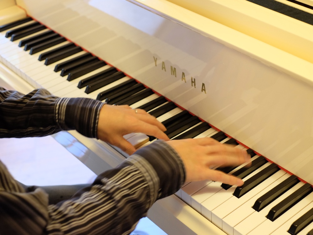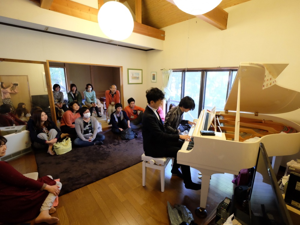 写真の通り、白いグランドピアノという、なかなか珍しいものを弾かせて頂きましたが、依頼者曰く、まずここにピアノを置く時に、白色以外考えられなかったとの事。自分も白い服を着てくれば良かったと思いましたが(笑)、皆さんに馴染みのある曲から始めていって、徐々に自分の音楽の世界にもっていくように進めていきました。