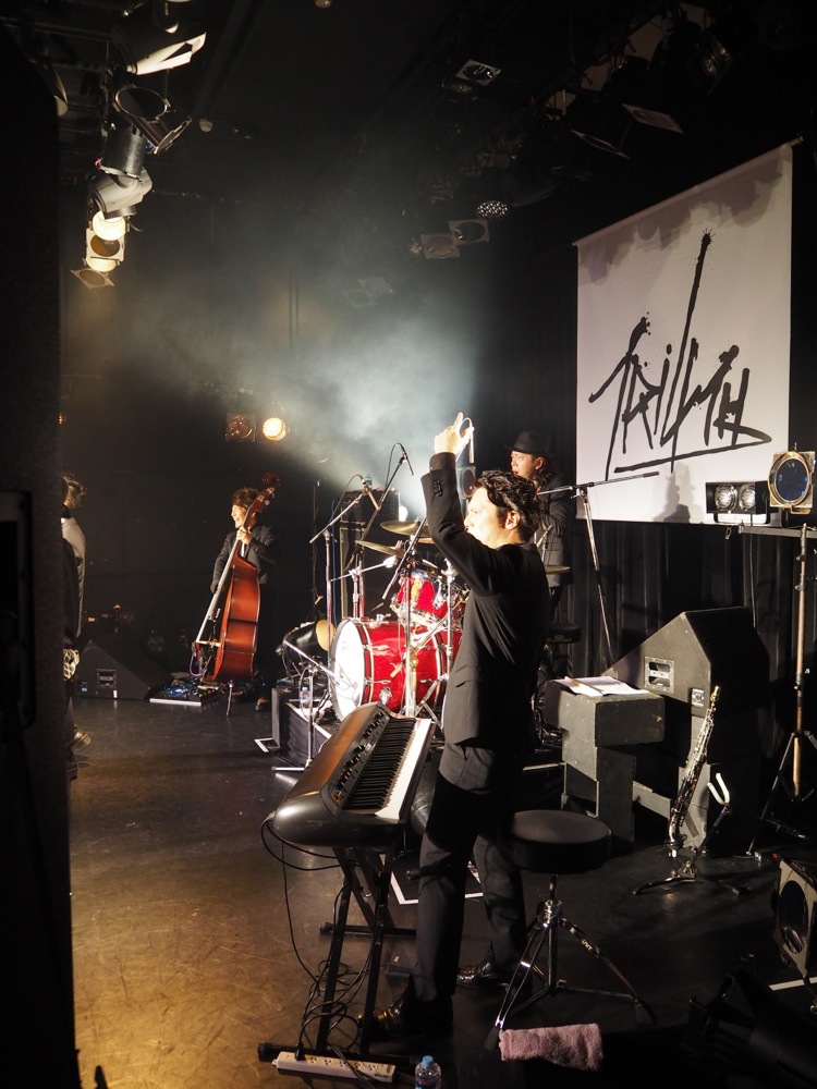 今回は『Hybrid ROOTS』のリリース・パーティー。当然、そのCDに収録されている楽曲を中心にお送りしていきますが、カバーアルバムであるが故、TRI4TH のオリジナル曲が必然的に少なくなってしまうという事が予想されていたかもしれません。…しかし、その事を忘れてしまう程、今回のカバー・アレンジのサウンドは正に TRI4TH!…といった印象を持たれたのではないでしょうか?…自分達も、そこが一番気を遣ったところで、カバー演奏というと、どこか客観的に曲を捉えてしまう傾向がありがちになってしまうところがあるのですが、アレンジは勿論、演奏面でも入念にリハーサルを繰り返して、違和感無くステージのレパートリーに組み込めるところまで持っていけたのでした。それはやはり、皆が尊敬している先輩方の楽曲…という想いもあるからでしょう…。曲にも敬意をはらって、自分達のパフォーマンスに消化していく。これが TRI4TH 流のカバー・アレンジなのです。
