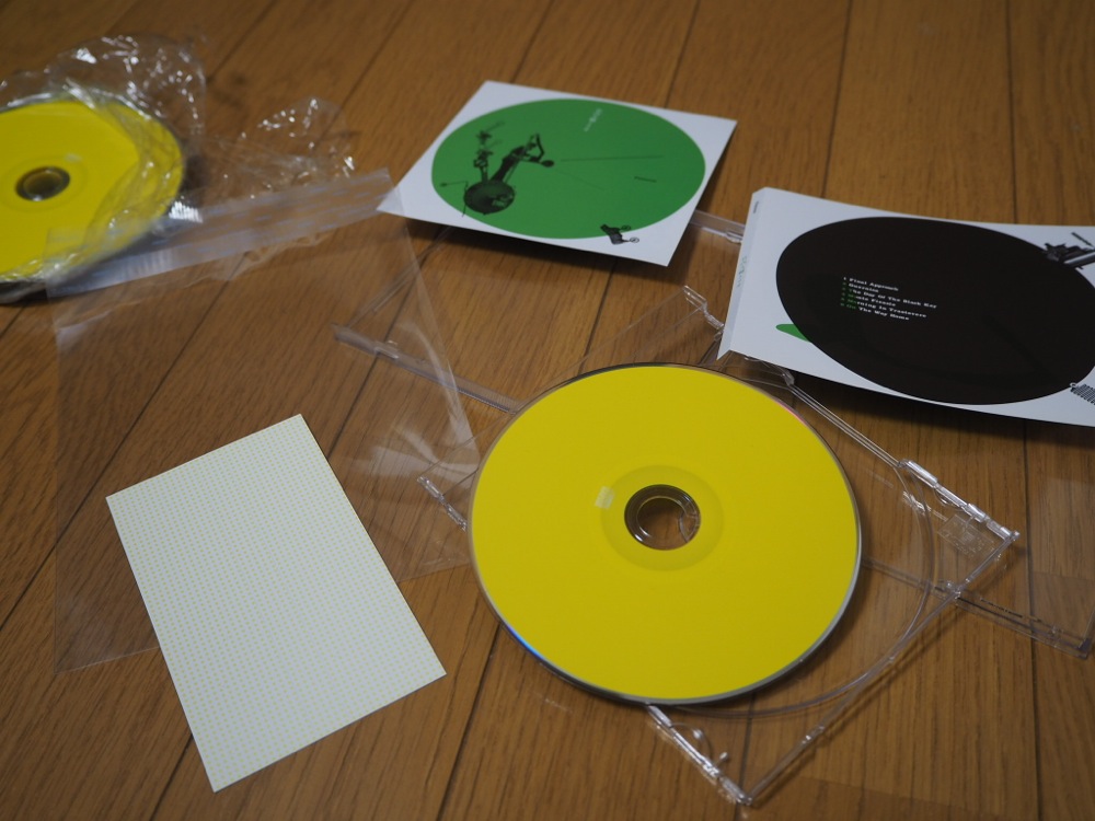 このCD『Pictures』は、いま考えると特殊な作り方をしていました。CDの盤のプレスは通常はパッケージングも同時にやって発注するのが一般的ですが、自分はプレスのみで発注をし、ジャケットや裏ジャケット用紙等を別注文。そしてクリアケースを電器屋等でその都度購入し、自分個人でパッケージングをするという手法で自分のライブに持っていってたのでした。