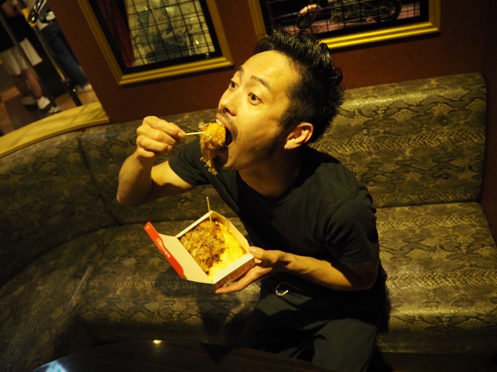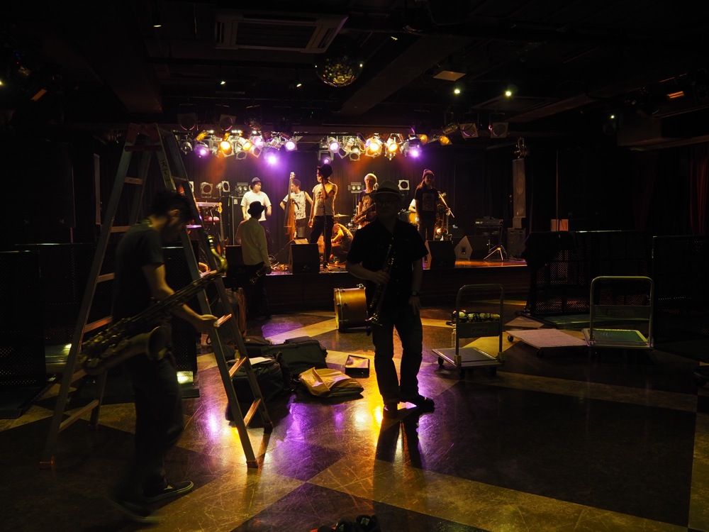 関谷家にてゆっくり休む事ができ、心斎橋 JANUS へと向かいます。JANUS は自分達は初出演となりましたが、今までやってきた大阪のライブハウスの中でも大きく、そして、いつもより豪華な雰囲気が漂うお店でもありました。勿論、JANUS に行く前には、サックスの藤田君が大好きなタコ焼きも購入済み…。心身共にモチベーションも高く、お店に入る事が出来たと思います。