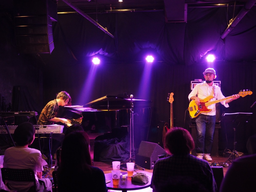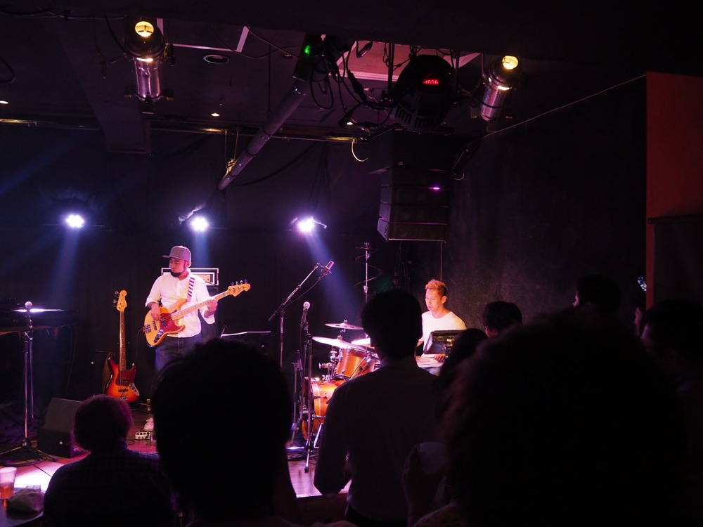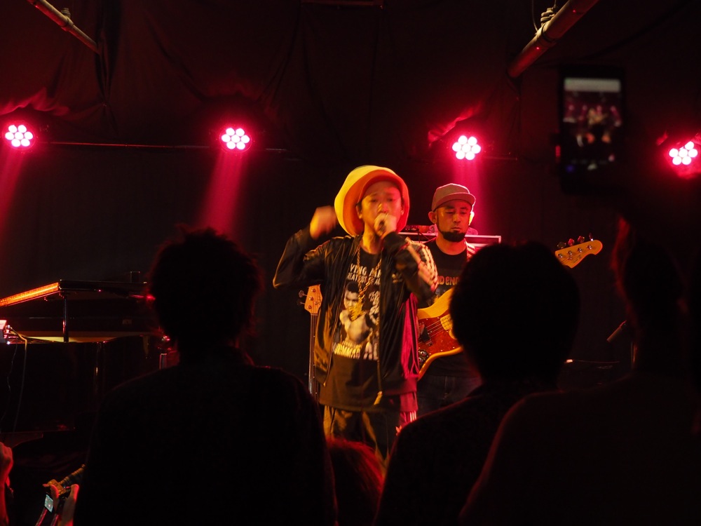 “Root Down”、そして Nautilus オリジナル曲“Nautiloid Quest”にラップをのせて、今回用に少々アレンジを施しつつお送りしていきます。普段自分達でやり慣れている曲ですが、ラップがのる事で曲構成上のバランスにも変化が生まれ、それを改めて Nautilus らしく再び組み立て直した…という感じでしょうか。演奏している時分達としても新鮮でありつつも、違和感も殆どありません。むしろこの為に曲が作られたのでは…と思う程でしたが(笑)、それくらい相性が良かったのでしょう。お客さんも盛り上がって聴いてくれていました。