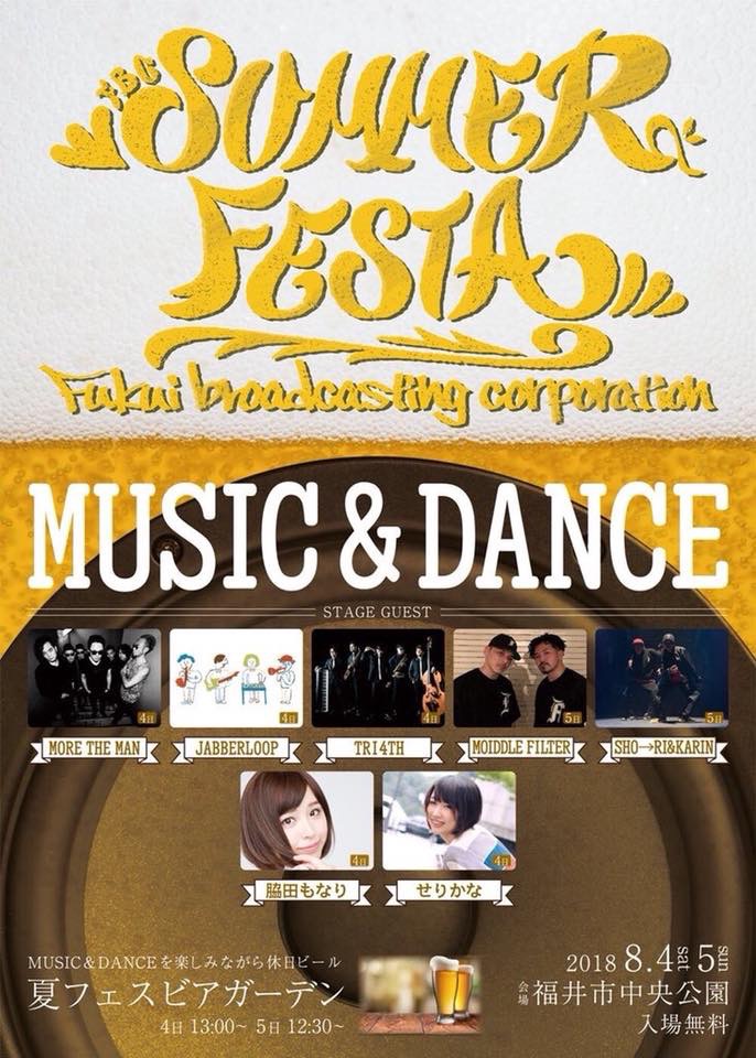 福井では、福井放送が主催する『FBC サマーフェスタ 2018』への出演と