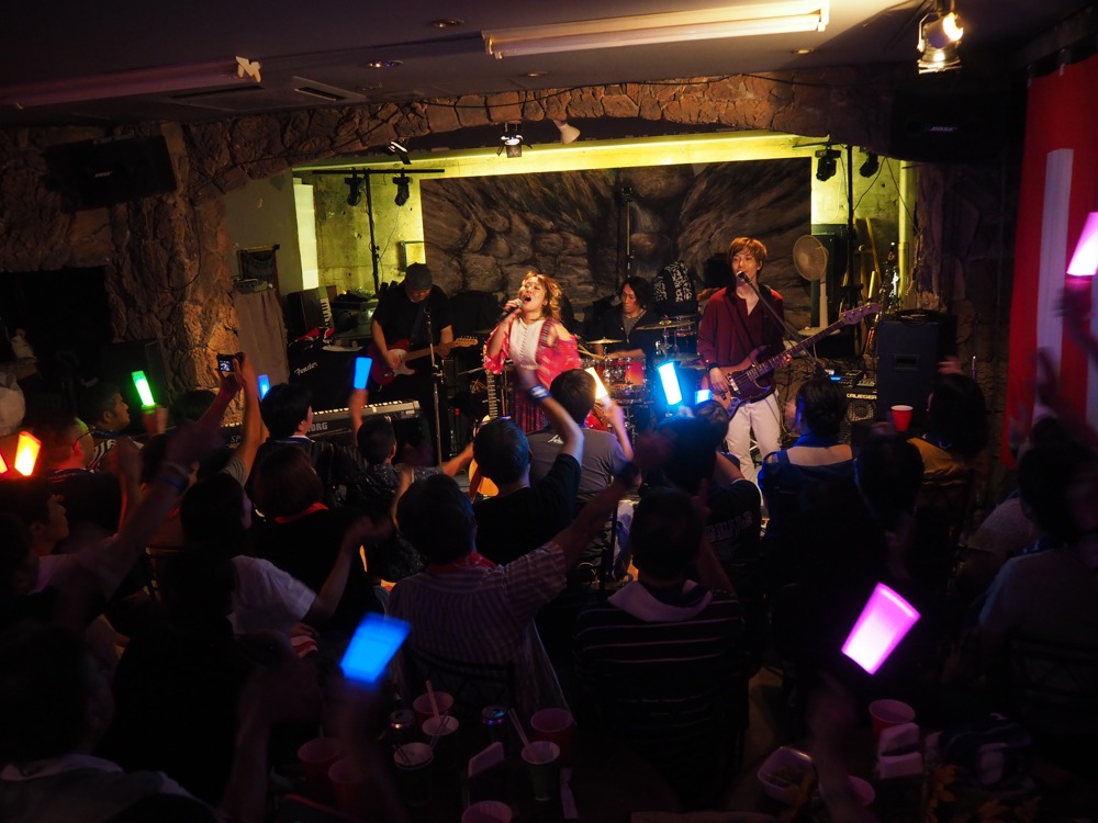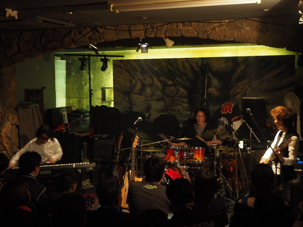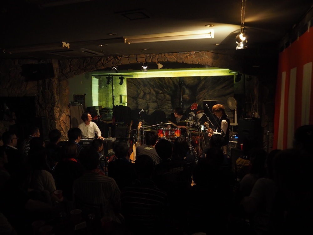 ライブハウスで大量に作る焼きそばからは、当然ではありますが煙の量も凄く、フロアには演出用にスモークでも焚かれたような雰囲気になってきましたが(笑)、お客さんの熱量と共に、正に夏祭りのような状況になってきました。そんな中での TRICK TRIO の初ライブ…。これは気合いが入ると共に、とにかく楽しくやろうという気持ちも自然に生まれ、良い感じでステージに臨めたように思います。前座という事で、時間も短めで約25分。グッと凝縮させて演奏させて頂きました。