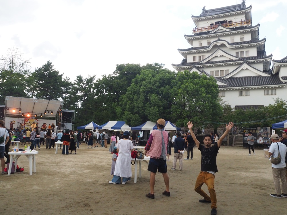 そして、今回の遠征におけるラストの演奏となった、広島は福山の R313 ロマンチック JAM への出演。再度 TRI4TH フルメンバーが集まり、会場は福山城天守閣前の広場という、なんともエキサイティングな場所にて、TRI4TH としては初となる福山でのライブが実現しました。ここでのステージもガンガンに盛り上げ、多くの方に喜んで頂けたのではないかと思います。また、TRI4TH とは昔から縁の深い円人図もこのイベントに出演しており、ライブ後は一緒にお酒を交わせたのも良かったです。