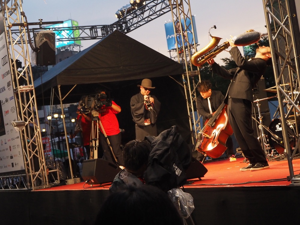 そして中州ジャズの本番となった、次の日の9月14日。当日は雨に悩まされた天候になってしまいましたが、なんとか TRI4TH ステージの時は小雨、そして止んでもくれていて、今回ついにメインステージともなる GREEN ステージでの演奏が実現したのでした。かなり前から多くの方に集まって頂いて、ステージから見えた景色は本当に素晴らしかったです。トリでもないのにアンコールまで頂き、嬉しかったです。どうもありがとうございました!
