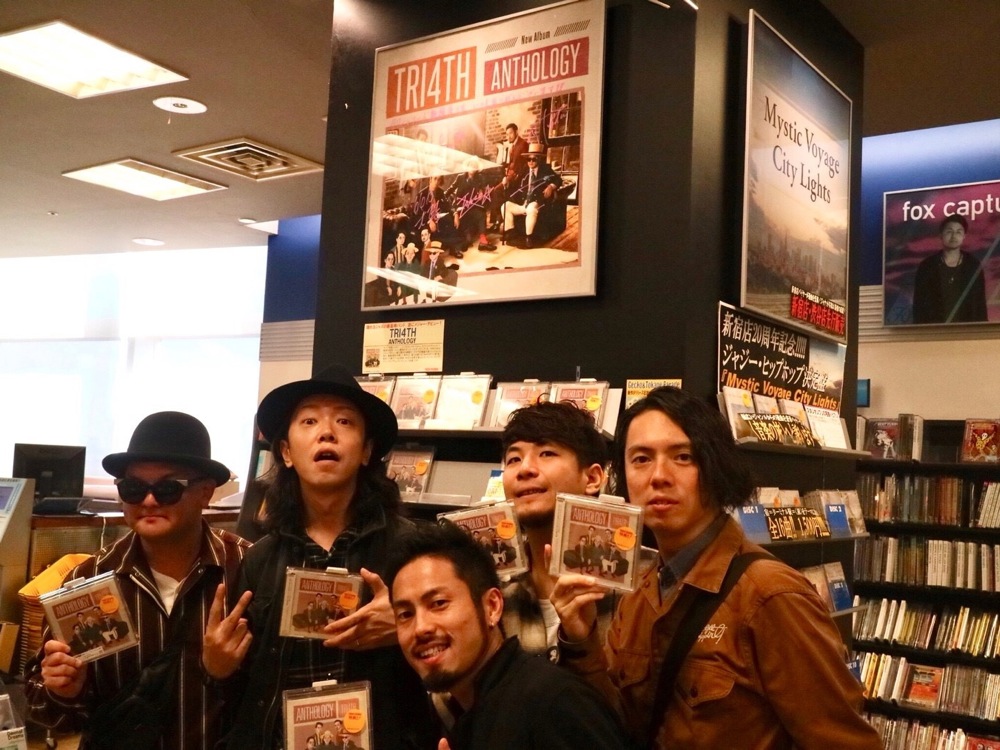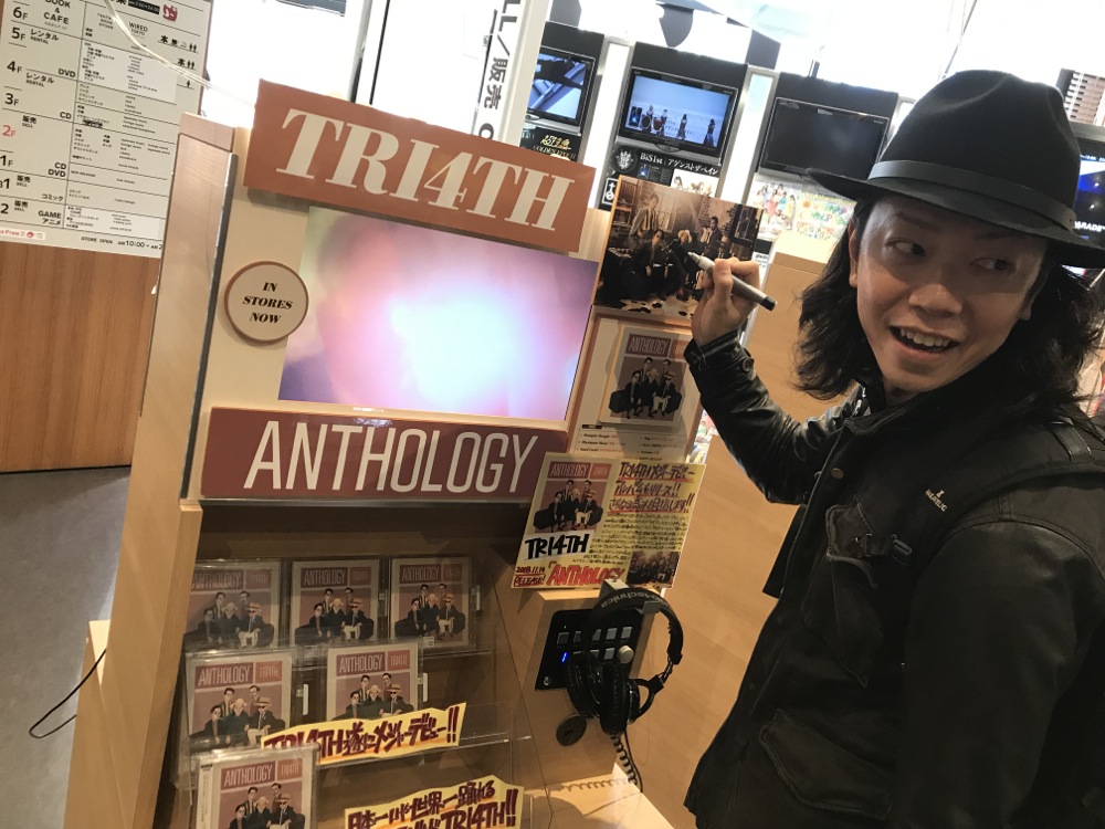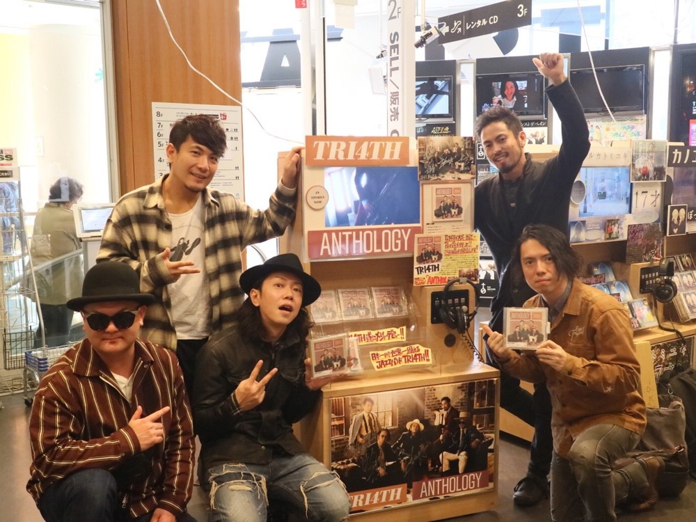 …ここからは、以前から毎回大変お世話になっているタワーレコードさんへと足を運ばせて頂きました。まずは渋谷店…。いつも大きな展開をして頂いている店舗で、ジャズフロアに入ると早速、店内から『ANTHOLOGY』の楽曲達が耳に飛び込んできました。TRI4TH 専用のブースもあり、やはりここに来ると無事にリリース出来たという安堵感を覚えます。ジャズ界を盛り上げようとしてくれてる熱意も伝わり、本当に大事にしていきたいお店だと思います。これからもよろしくお願いします!