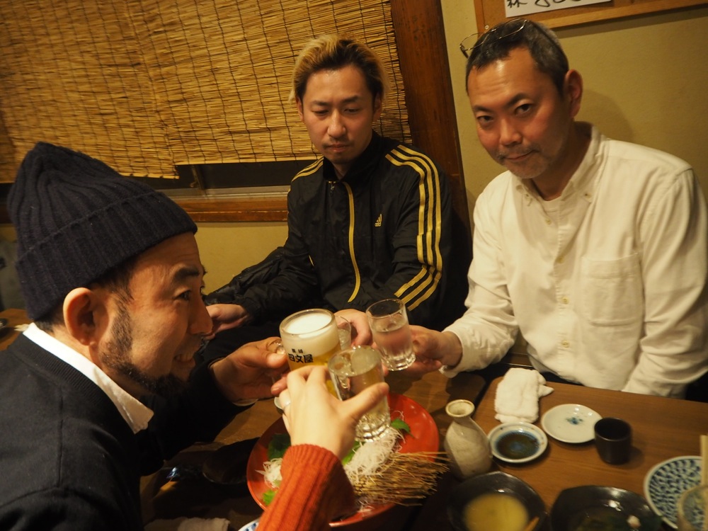 何度もお伝えしているように、最終日の3日目のレコーディングは順調で、本来ならば夜までかかる予定だったところを、夕方の17:00頃には完全撤収出来るような状態になっていました。この後、皆で飲みに行ったのは言うまでもありませんね…(笑)。ドラムの佐々木さんは勿論、ベースの梅沢さんまで、車をいったん自宅に置き、再度飲みに集まるという行程をとるくらい、この日はとにかく打ち上げがしたかったのです(笑)。美味しいお酒を飲めたのは言うまでもありません!…皆様、お疲れ様でした。そして、引き続きよろしくお願いします!