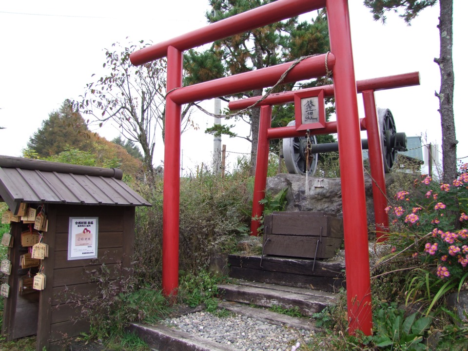 特に、鉄道最高地点神社はなかなか粋な代物です。後ろには車輪が祀られて?いますし、賽銭箱の奥にはレールが埋められています。また、神社によくあるガラガラの部分が、枕木とレールを繋ぎ止める釘になっており、それが幾つも繋ぎ止められてあるので、なるほど、振れば確かにガラガラ(割りと高音?…笑)と鳴りました。