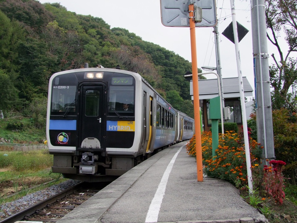 この車両は2007年に登場して、現在までに3両全てが小海線で活躍していて(常時2両が運用されていて、残りの1両は検査や試験等に使用…)、定期的にその姿を見る事が出来ます。大量生産にはまだまだこれからなのかもしれませんが、既に小海線ではマスコット・キャラ的な存在になっていて、小海線自身が『わくわくエコランド小海線』と明記、表示されていたりもするようです。成程、鉄道に特に興味が無い方でも、小海線に乗ってはカメラで色々と撮っていた人も多かったのですが、そういった施策が影響されているのかもしれませんね。