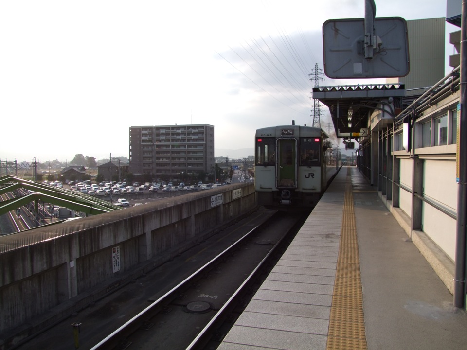 緩やかに勾配を降りて、佐久市の中心駅でもある中込駅に着くと、もはや高原路線のような雰囲気は全く無くなって、普通の地方のローカル線のような、のんびりとした感じ…また、駅間も短くなるので、地方の通勤路線のような性格も持ってくるようになります。