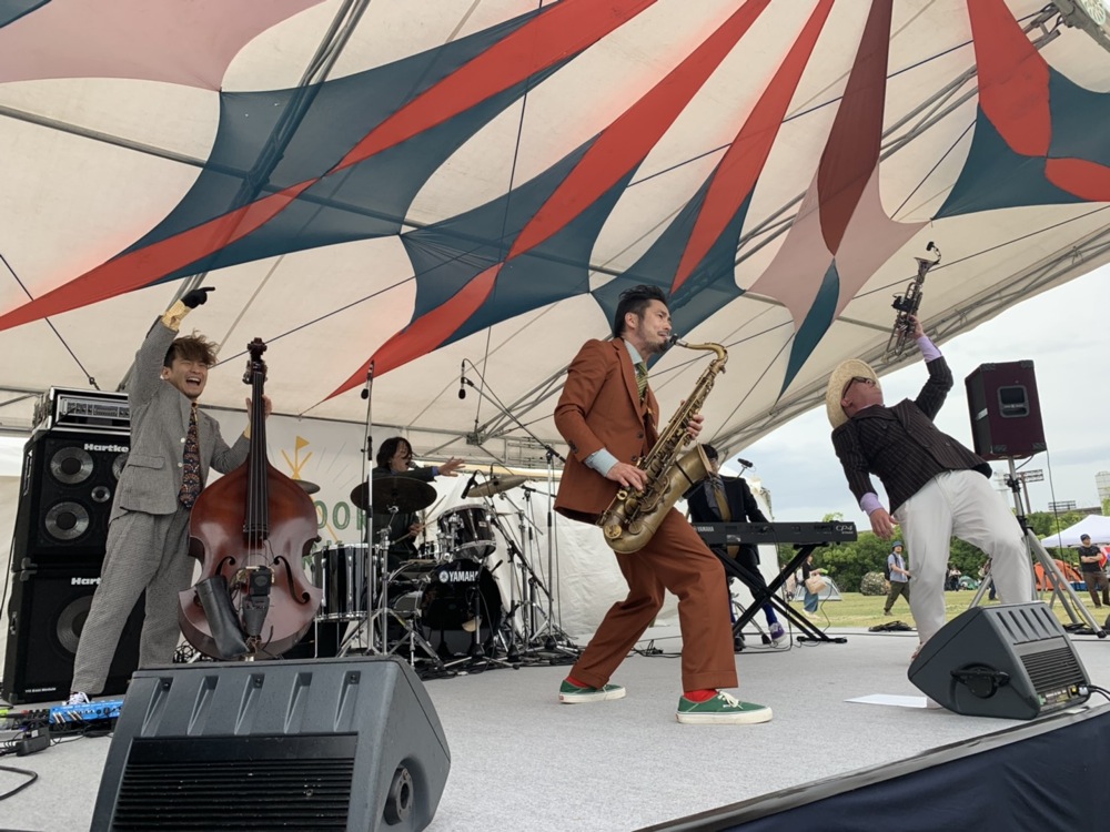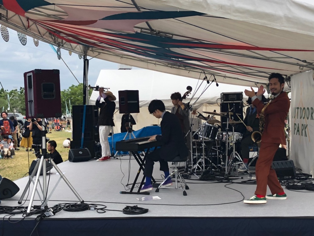 自分達に与えられたステージ時間は35分。野外という事もあり、開放感のある TRI4TH らしい楽曲達で攻めていきたいものです。ファミリー層も多く、ジャズをあまり聴かない方達にも分かりやすいような手法でステージを展開させていきました。自分達のステージは勢いがあると定評がありますが(笑)、このような場所では勢いだけではなく、ジャズの楽しさ、ライブの楽しさ等も混ぜてお送りしていくように務めていきました。
