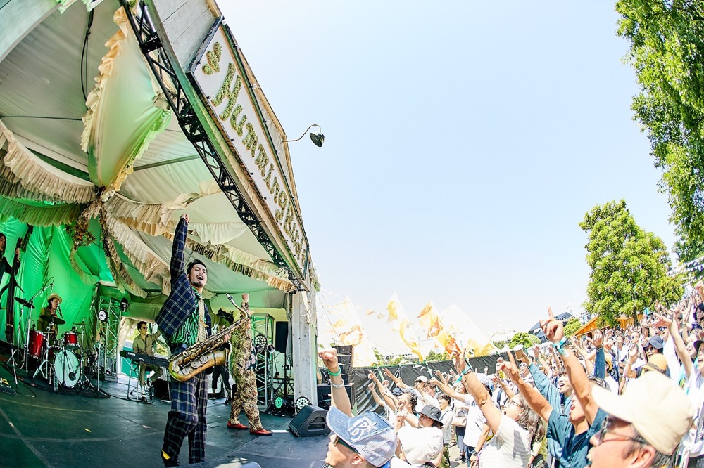 今回、初の GREENROOM FESTIVAL への出演という事で、メンバーの気合いも今まで以上に入っていたのは言うまでもないでしょう。そして何より、挑戦尽くし、初物尽くしが披露された今回のステージ。細かい事はまだ言えませんが、ステージの写真から何か感じ取って頂けたらと思います。