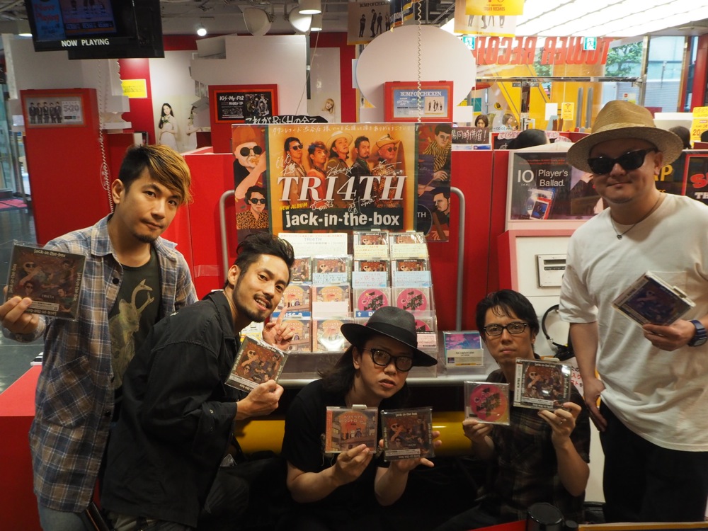そしてこの後には1階へ。人が一番行き交うエントランスフロアにも今回置いて下さっていました。数々の著名アーティストの作品が並ぶ中、TRI4TH 棚がポスター付きで置いてある事…。本当に光栄でした。…つまり、渋谷店には7階、3階、1階の3フロアで展開して下さっているという事で、これはバンド史上初めての事だったのではないでしょうか。多くの方の目に届くようなご配慮、自分達も真摯に受け止め、更に良い作品を作っていきたいと思った1日でもありました。