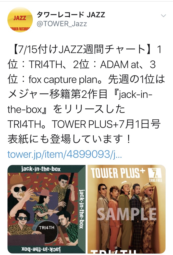 これは嬉しいですね!…ジャズ好きは勿論、普段ジャズを聴かない方でも楽しめるように制作させて頂いたCD『jack-in-the-box』。多くの方に聴いて頂けているという何よりの証拠でもあると思います。どうもありがとうございます!…引き続き、どうぞよろしくお願いします。更に多くの方々に届きますように!