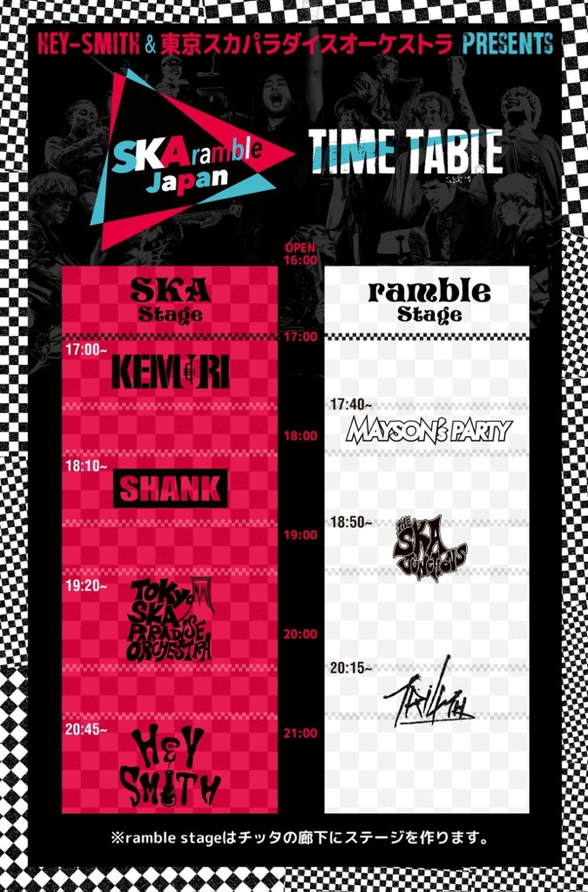 Open…16:00〜、Start…17:00、TRI4TH の出番は ramble Stage にて20:15〜、