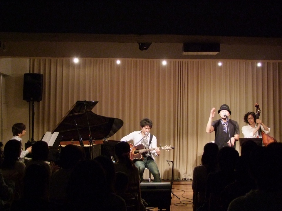 つまりは、フロムナウの2人と、ピアノとベースを加えて、計4人編成のライブとなったわけです。前回も4人でしたが、この時はベースではなくてパーカッションだったので、また一味違うライブにもなりそうだったのは明白でした。