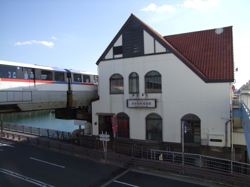そのまま走ると、大井競馬場前駅です。その名の通り、大井競馬場への来場者の便宜を図って造られました。競馬開催日には多くの観客がこの駅を利用しますが、運河の向こうにある八潮団地の利用者数も多いのが特徴かもしれません。駅のすぐ隣には厩舎がある為か、若干馬臭いのも目立ちますが…(団地は運河の向こうにあるので、影響は無いと思います…笑)。