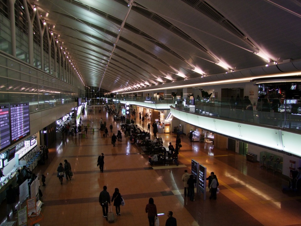 ターミナルは前述したように、モノレールの改札を出て1分も掛からずに(…と言うか、出た所がターミナル内なので…笑)アクセスする事が可能です。まだ国際線がメインの空港ではないので、そこまで広い空間とは言えませんが、機能的に造られた構造は流石とも言えるでしょう。この出発階は“空”を空間コンセプトとしてあり、天井は“すじ雲”をイメージしてあるのだとか。ここから海外に旅立つ乗客を迎え入れるのに、十分な環境だと思いました。