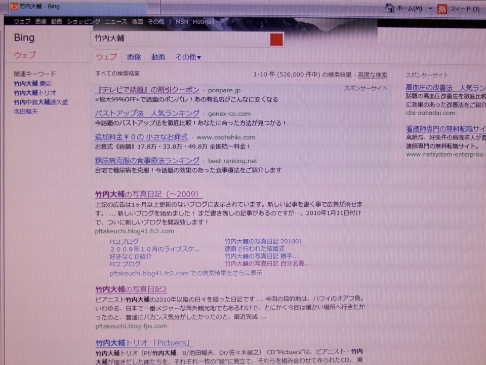 …と、同じ事を、自分が使っている Hotmail の検索エンジン“Bing”でもやってみたのですが、こちらは未だに昔の上位に…(Yahoo では、現在のが上に来ています)。まだまだ、これからも頑張らなくてはいけないという事で…(笑)。