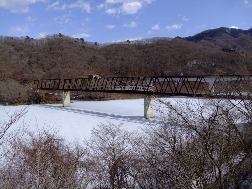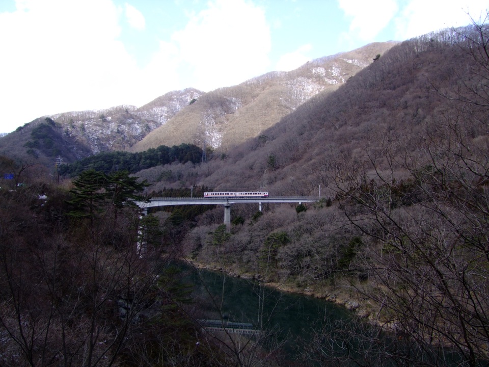 この区間も山と川が迫ってきているようで、やはり列車はトンネルや橋梁で抜けるのですが、先程までその区間は長くなく、点在している集落と集落を繋いでいるような感覚に近いかもしれません。道路は川に沿って若干蛇行して進むので、鉄道とはえらい違いですが、もう一本奥に有料道路の存在もあるので(こちらはトンネル等で一気に突き抜けます)侮れません。そう言えばこの野岩鉄道は、自分が中学生の頃は4両編成での運転が普通で、勿論日曜日という事もあったと思いますが、今よりも賑やかだったイメージがあります。しかし、現在では2両編成での運転が原則で、それでもこの日はガラガラだったので、やはり時代の影響も無視できない部分なのかもしれませんね。