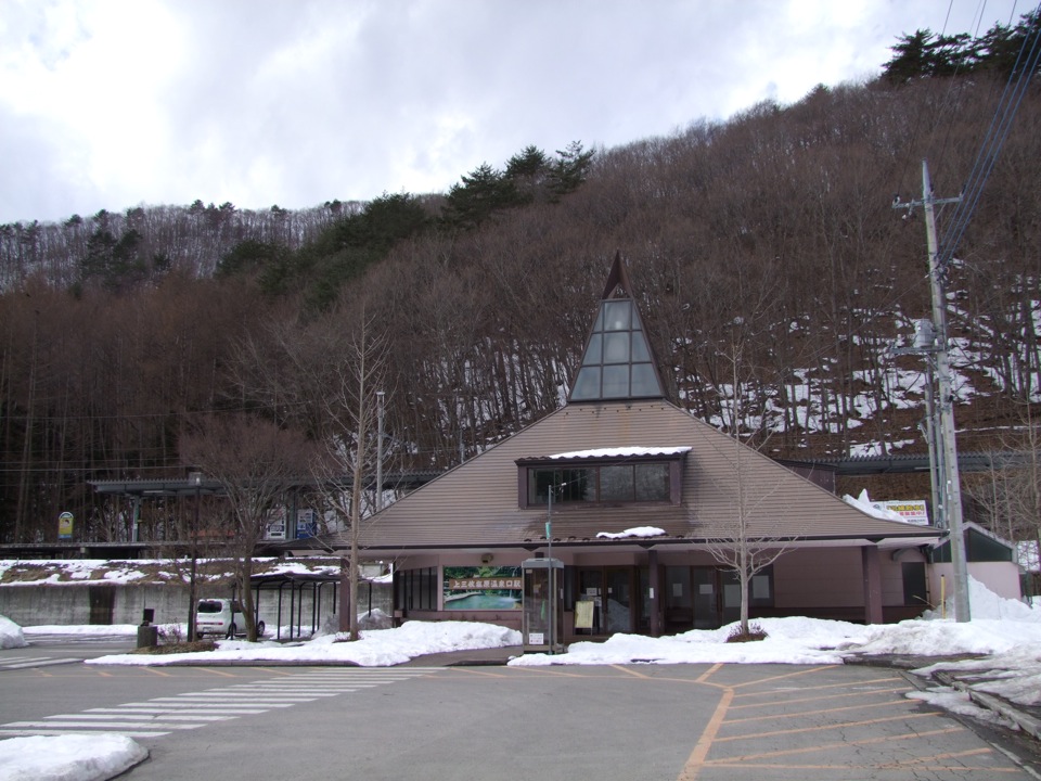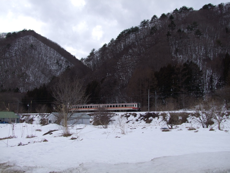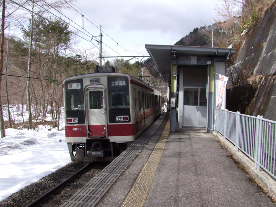 …歩いて歩いて、それでも1時間は掛からずして上三依塩原温泉口駅に到着しました。ここは塩原温泉への玄関駅ともなっていて、駅前から路線バスも運行しています。そろそろ雪も目立ち始め、栃木県から福島県に入ろうとしている場所でもありますね。この駅舎は右上写真の通り、結構モダンな装いをしていて、それこそ観光の拠点にでもなりそうな佇まいなのですが、次の列車に乗った乗客は自分1人だけでした。冬はスキー・シーズンで、野岩鉄道沿いにもスキー場は幾つか有り、完全なオフ・シーズンとは言えないとは思うのですが、やはり現在は車が主流なのでしょう…。実際、スキー人口自体が減っているらしいですし、なかなか観光を取り巻く状況は厳しいようです。