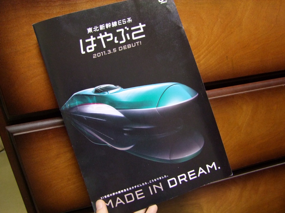 3月の末から4月の頭にかけて、自分の九州ツアーがあるという事は前のライブスケジュール〔2011年3月と、3~4月の九州ツアーのライブスケジュール 参照〕に載せさせて頂きましたが、この時には九州新幹線も全通しているわけで、事実上、鹿児島(鹿児島中央駅)から青森(新青森駅)まで、新幹線で結ばれている事になります。…そこで、せっかく九州にいるので、この祭鹿児島から青森まで新幹線で乗り通してしまおう!…と考えた時に、その青森からの復路に抜擢されたのが“はやぶさ”だったわけなのです。