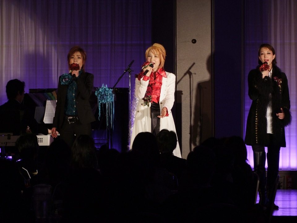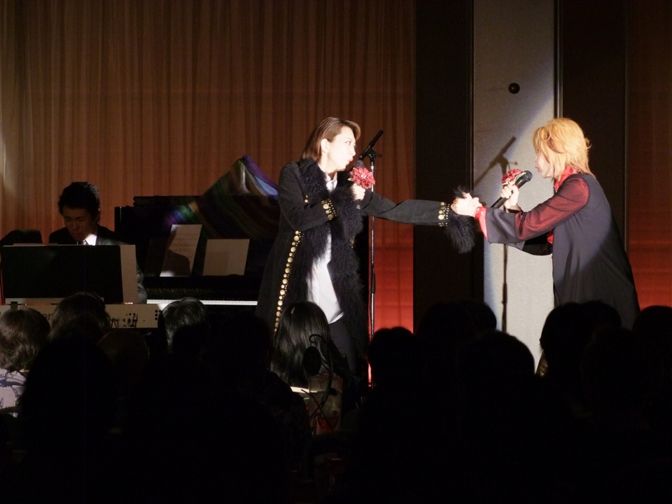 今回はゲストに、ボーカルの椿火呂花さん(同じく牡羊座)、鳴海じゅんさんを迎えて、それぞれの共演曲や、最後には3人での共演となる等、色々とステージにも変化を混ぜつつ歌われていました。実は鳴海じゅんさんも自分と近い境遇で、今回は出演する筈では無かったのですが、チャリティになって急遽出演。ステージに華を添えて下さいました。自分も、それぞれの方との共演はありますが、3人揃った状態で見たのは初めてだったので、また個性が分かりやすいくらい滲み出ていて(笑)面白かったです。1部の後、2部の最初には、この3人によるトークが行われていました。