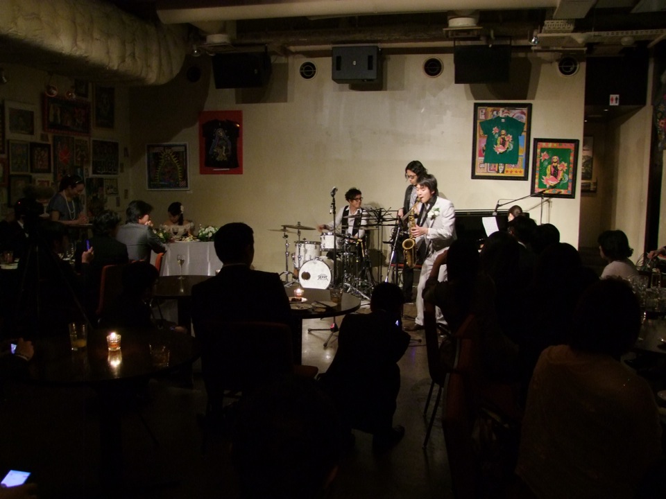 昨日、自分の音楽仲間である、サックスの郷原繁利君の結婚式2次会パーティーに出席してきました。郷原君とは、もう何度も何度も一緒にライブをやってきた仲で、これからも一緒に音楽をやっていくであろう人物の1人でもあります。結婚したというのは本当に嬉しく、心からお祝いさせて頂いたものでした。